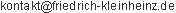 Sie haben alle geltenden Betroffenenrechte, d.h. Auskunftsrecht, Korrekturrecht, Widerrufs- und Widerspruchsrechte sowie Beschwerderecht. Diese können Sie unter – kontakt@friedrich-kleinheinz.de – geltend machen.